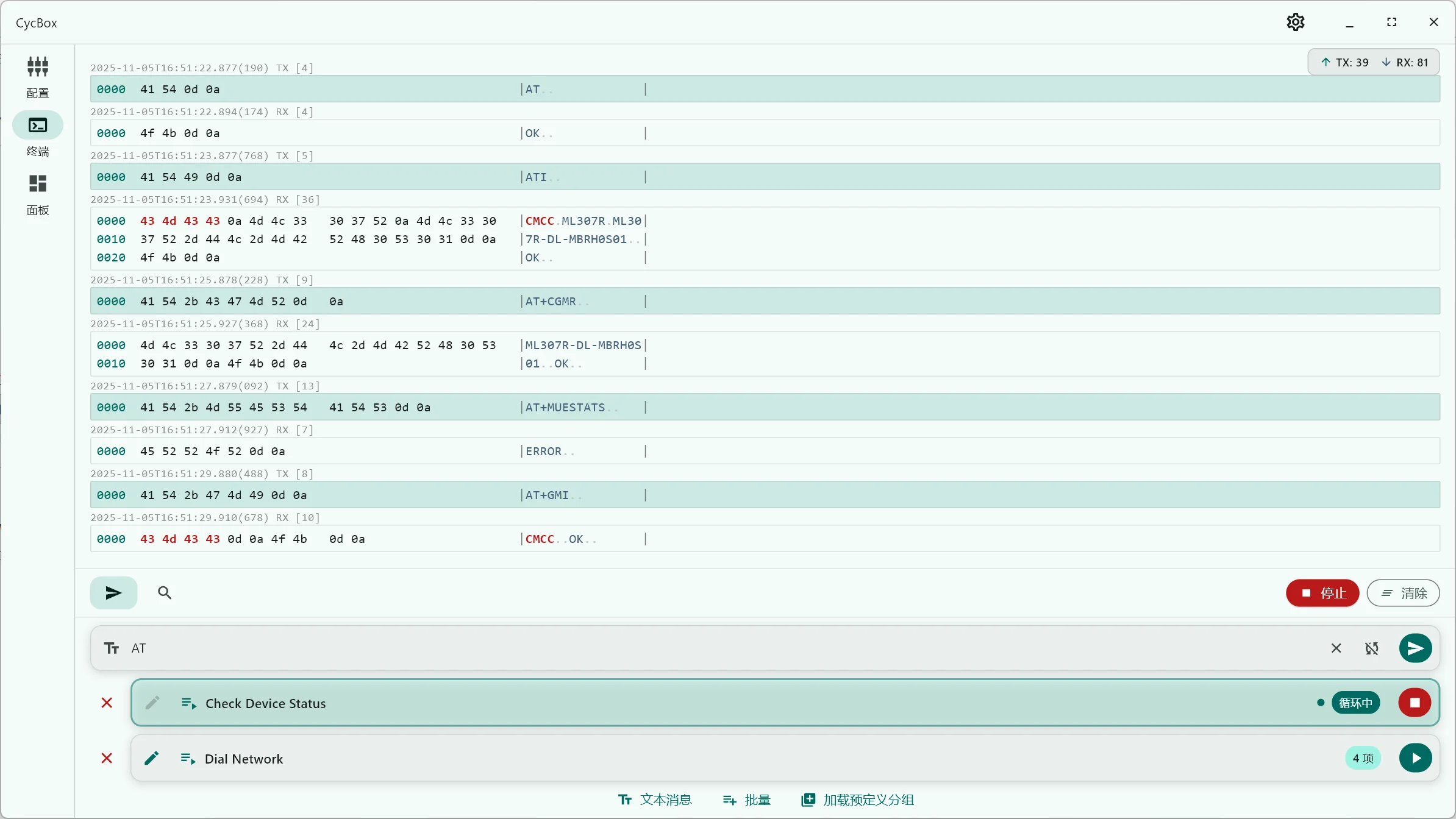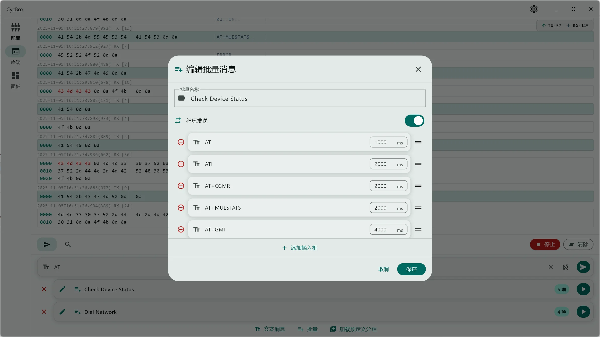 支持定时发送与指令序列配置,可一键执行复杂的调试流程