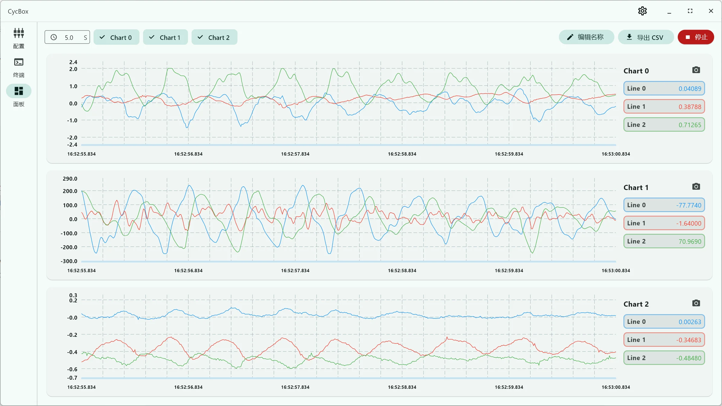 数据可视化面板,支持图表绘制、快照截取与数据导出